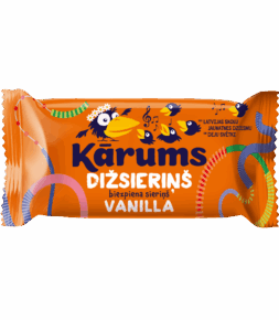 Sastāvdaļas: biezpiens 61%, cukurs, glazūra 18% (sviests, cukurs, kakao pulveris), banānu piedeva 2,5% (invertcukura sīrups, ūdens, dabīgs aromatizētājs (banānu), banāni 1%, biezinātājs karagināns), krāsviela karotīni, dabīgs aromatizētājs, aromatizētājs vanilīns.