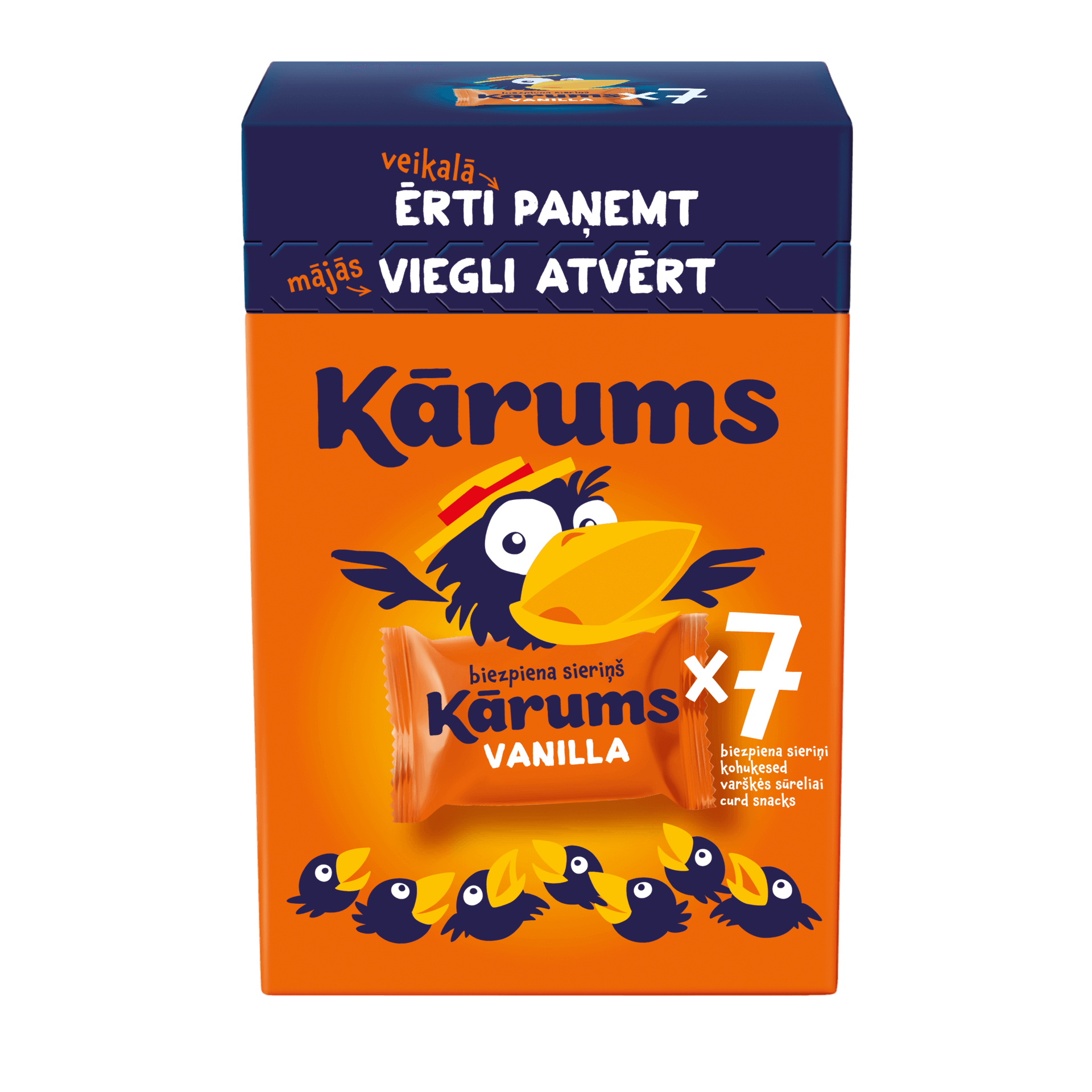 Sastāvdaļas: biezpiens 63%, cukurs, glazūra 18% (sviests, cukurs, kakao pulveris), aromatizētājs vanilīns.